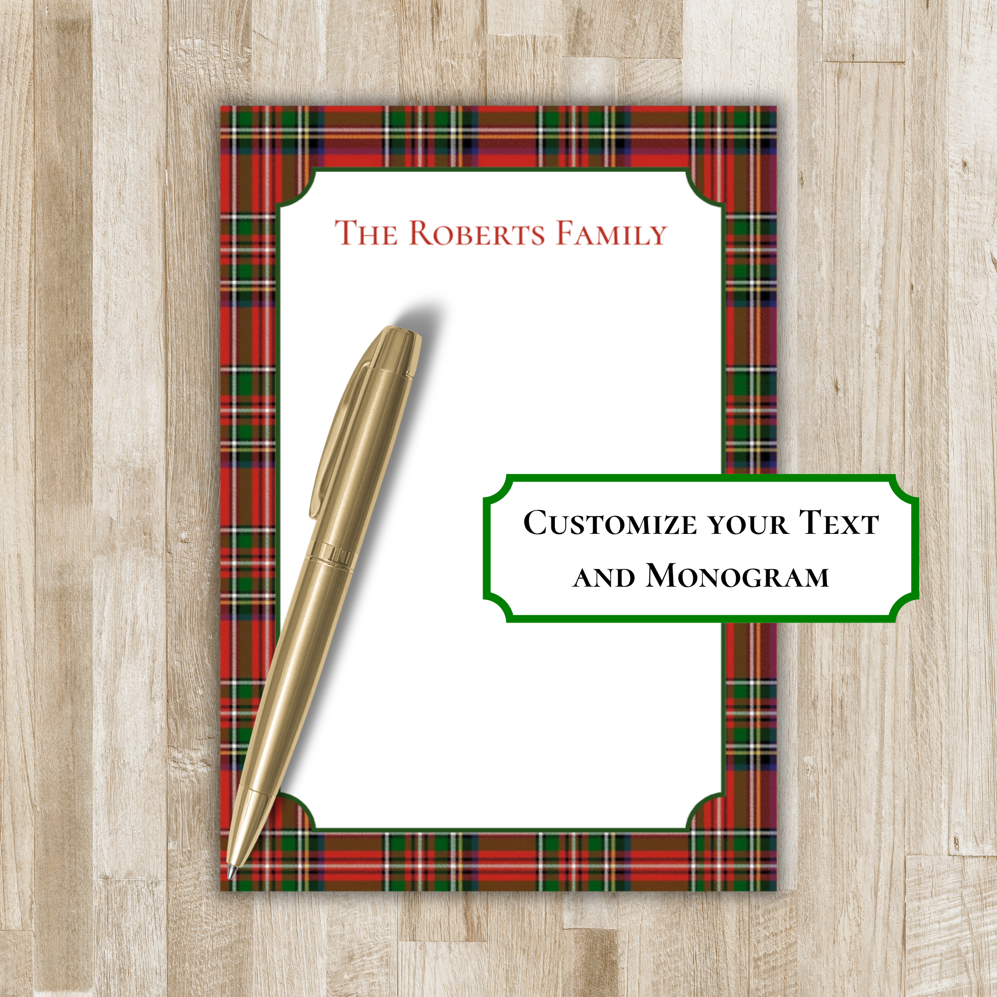 Personalized Tartan Plaid Notepad | Red & Green Plaid Christmas Notepad