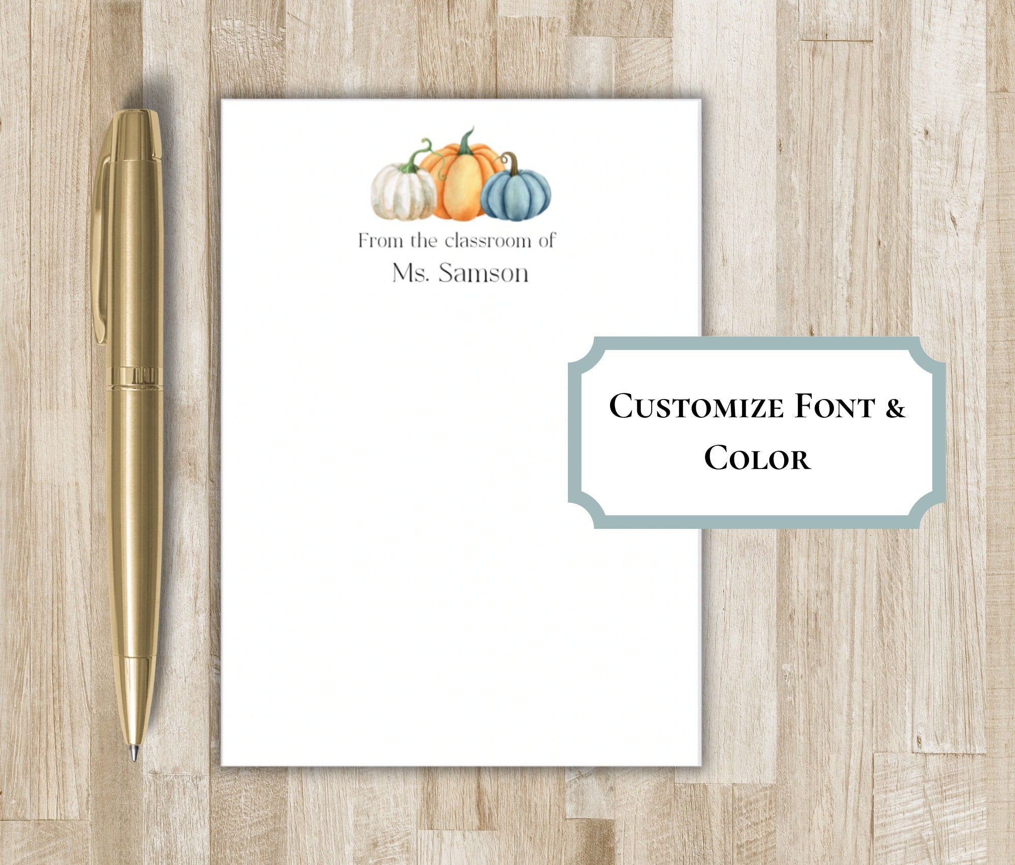 Fall Pumpkin Notepad | Personalized Fall Notepad | Fall Teacher Gift | Fall Stationery | Custom Notepad