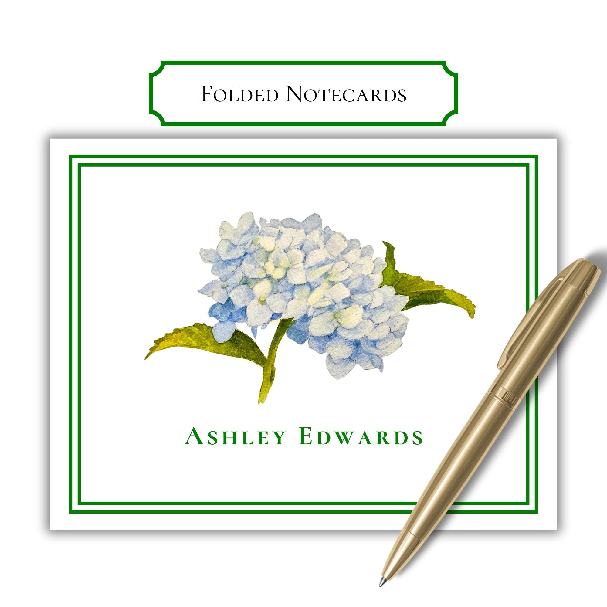 Personalized Hydrangea Folded Notecards