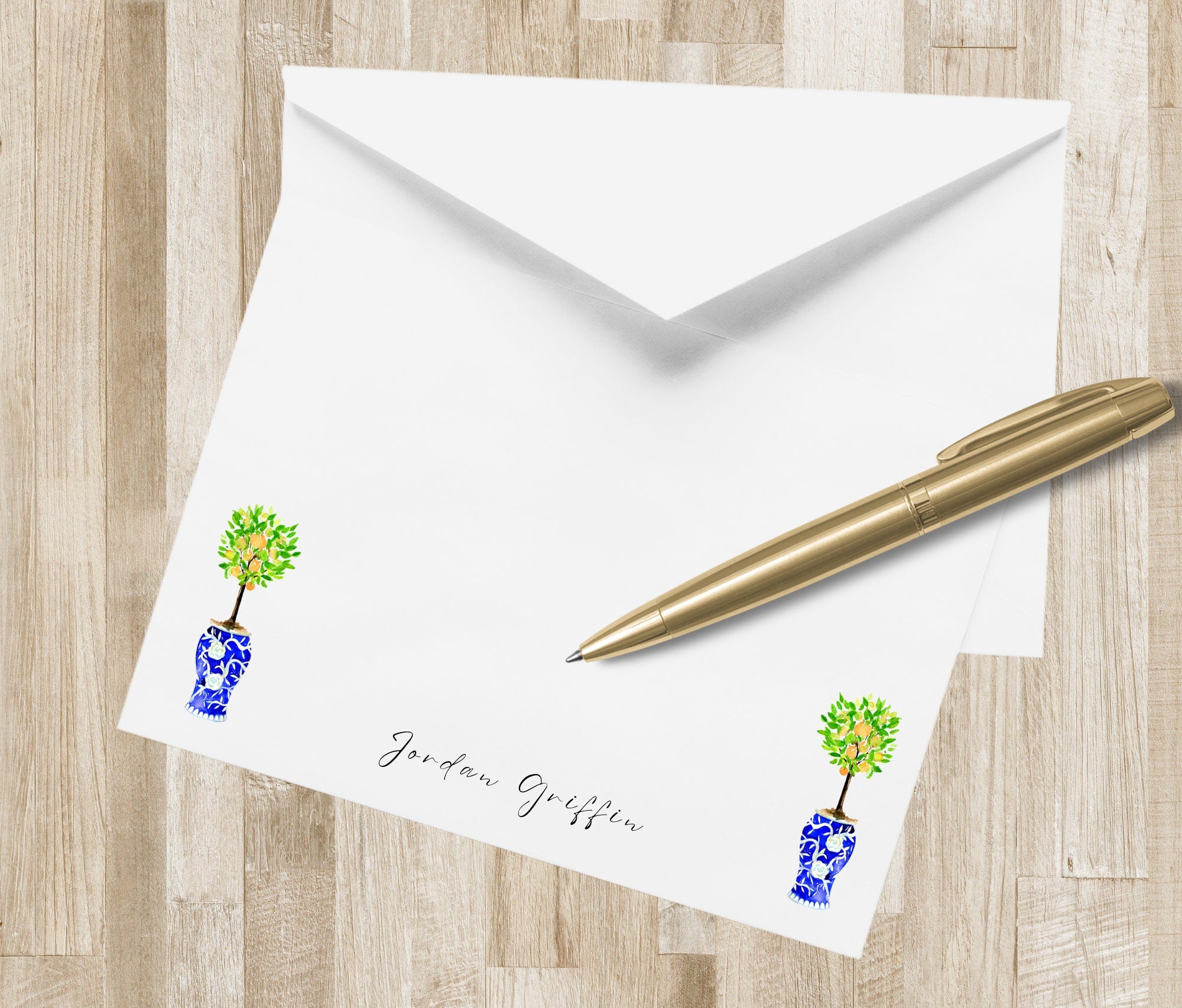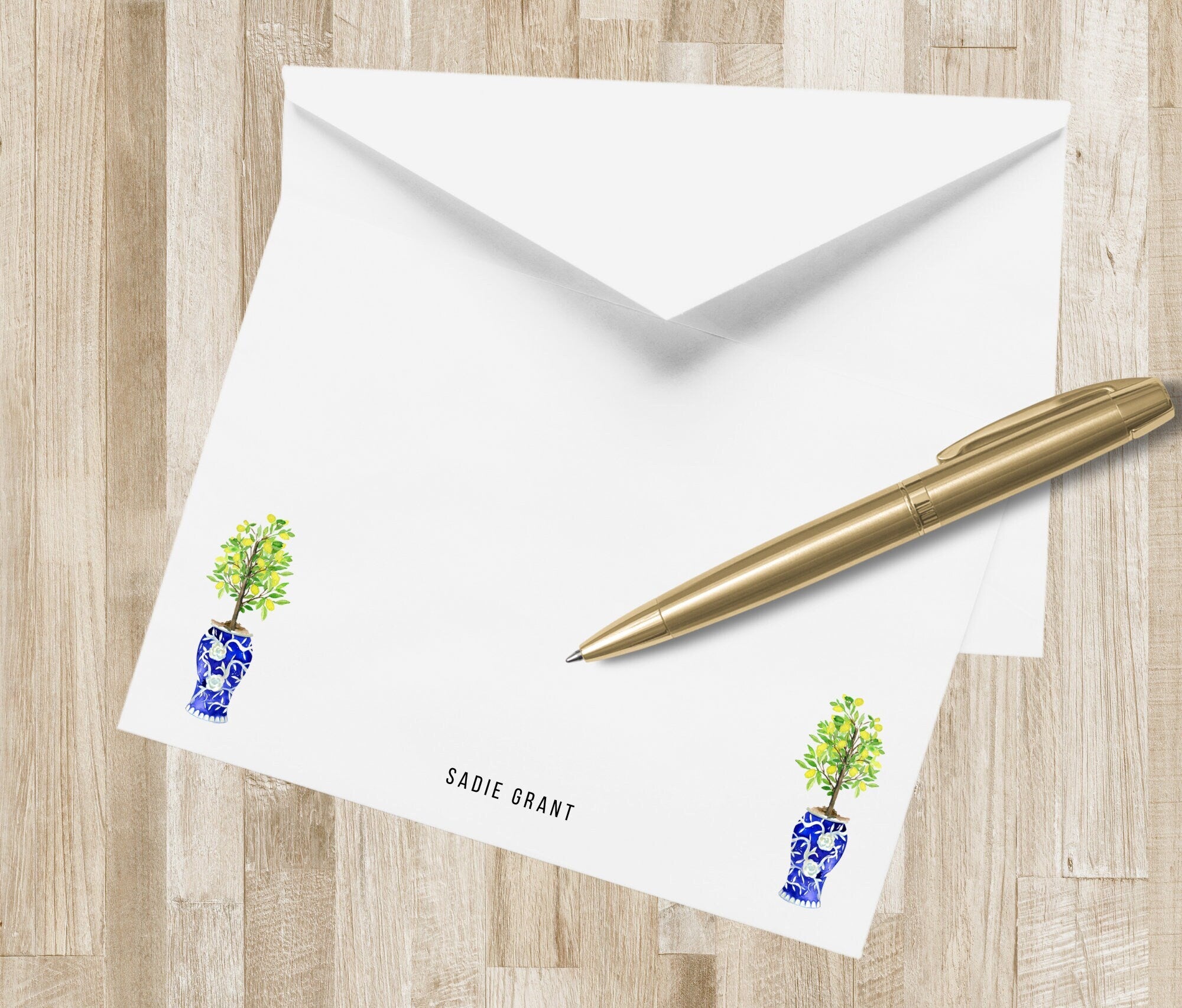 Personalized Lemon and Orange Tree Stationery | Custom Topiary Stationary | Citrus Notecards | Chinoiserie Notecards
