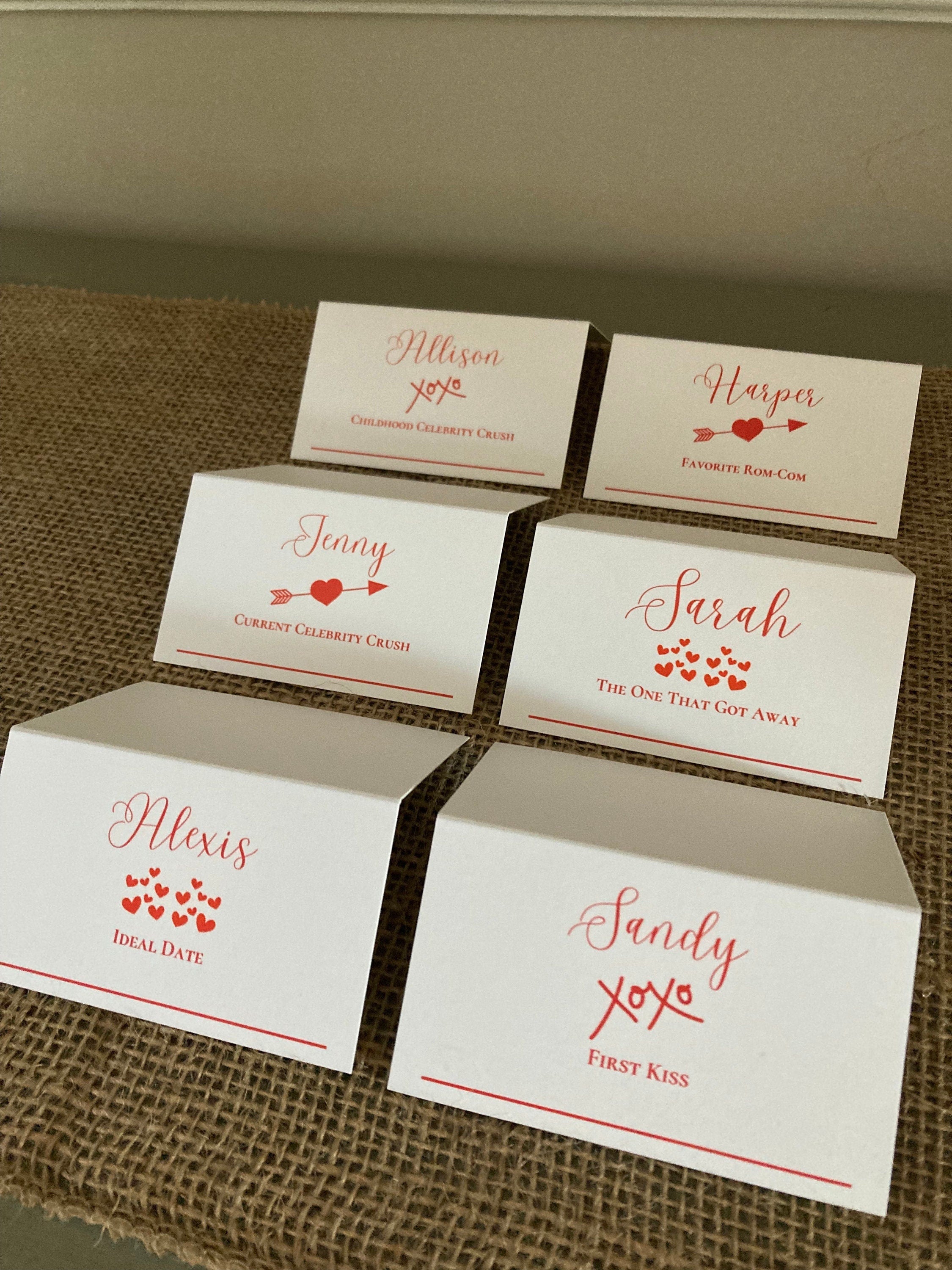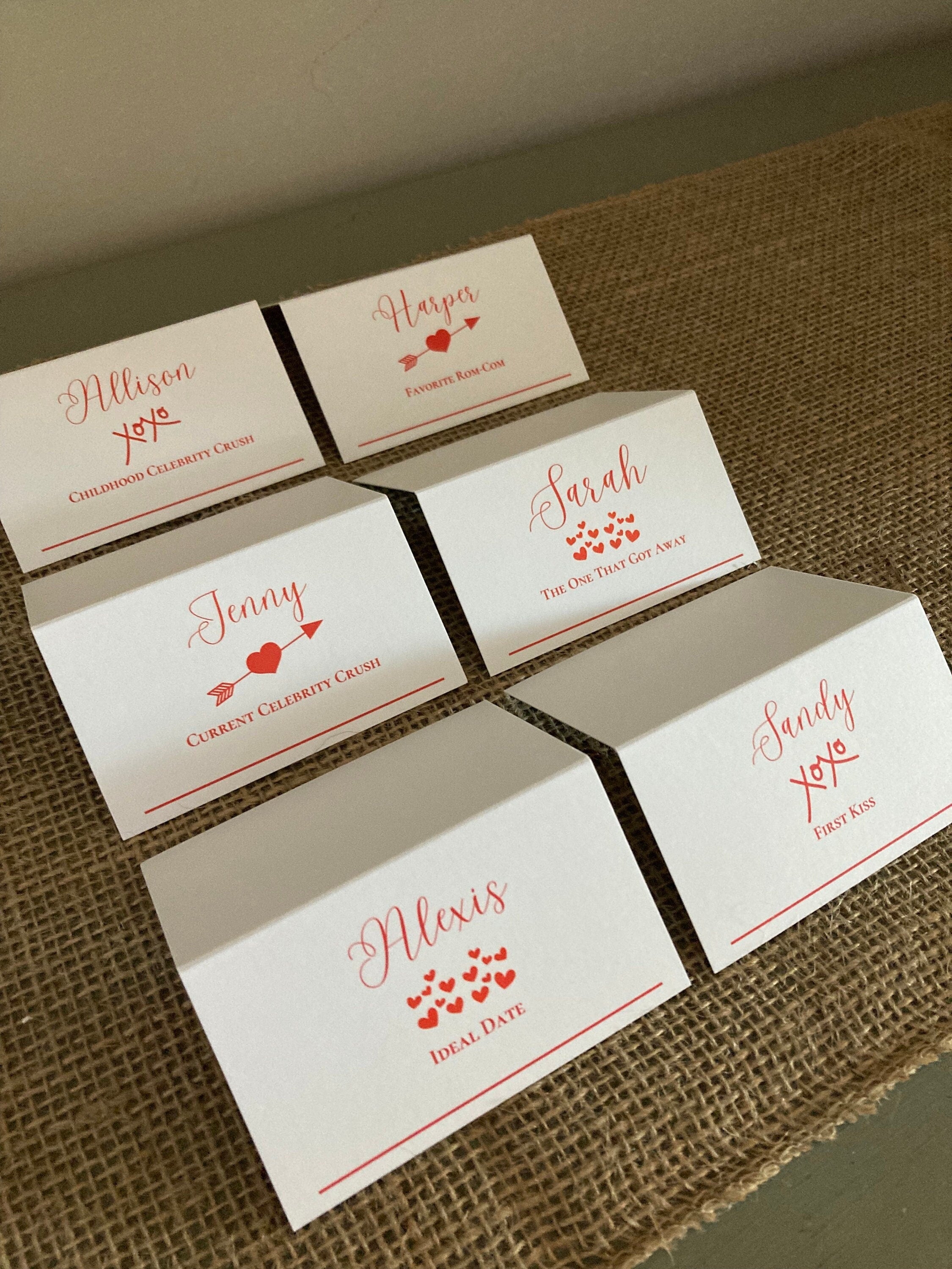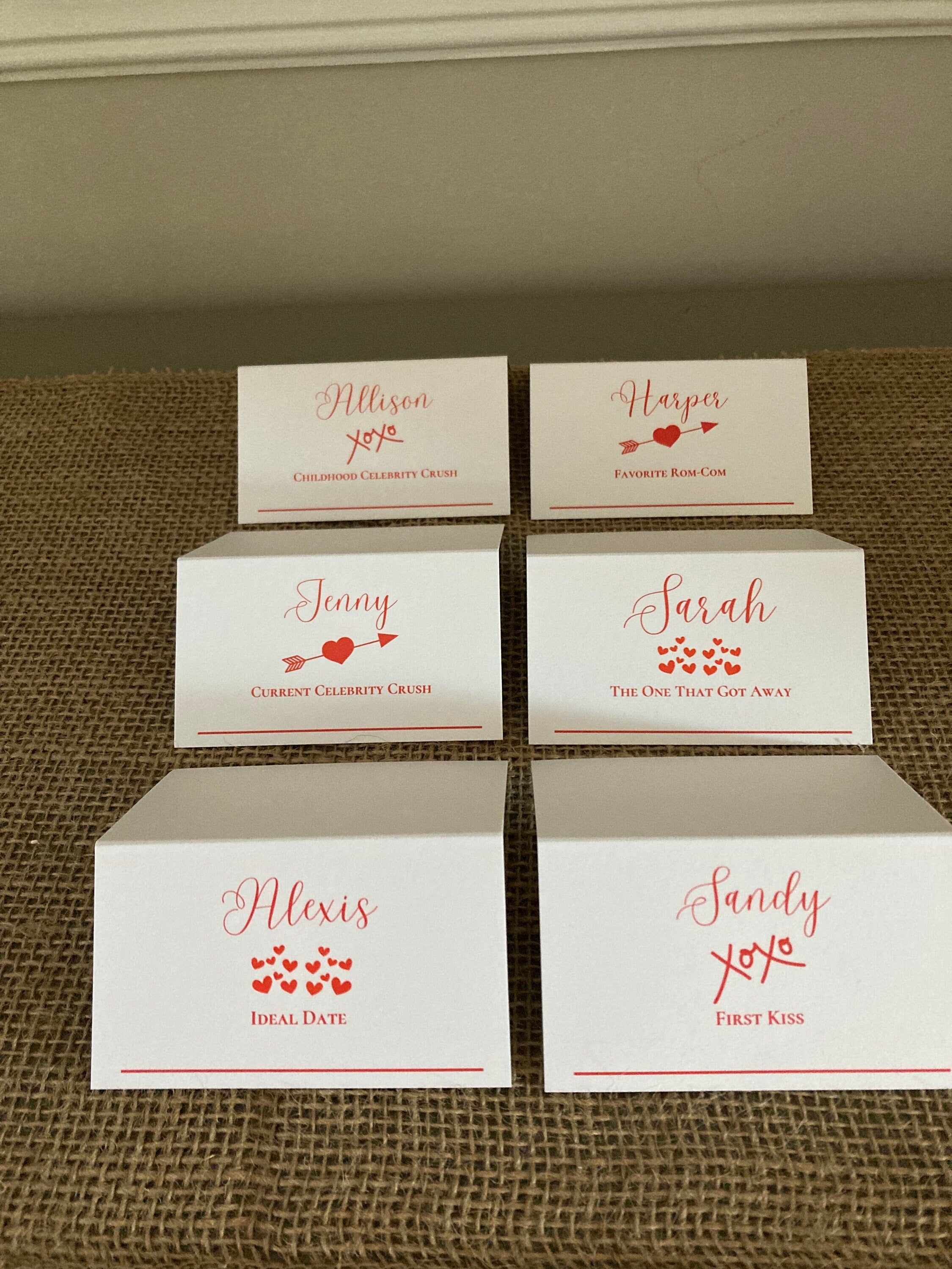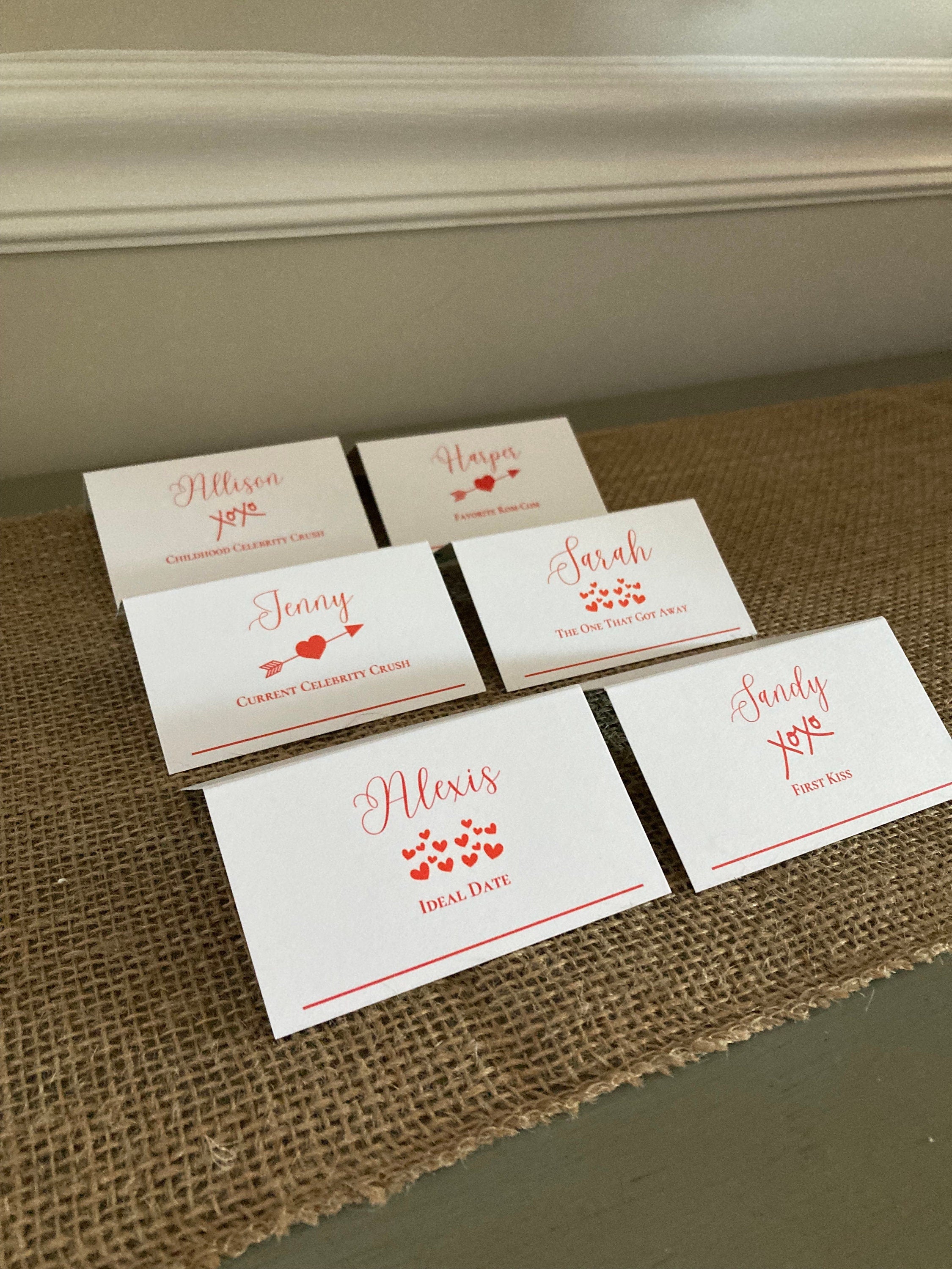 Valentines / Galentine's Dinner Place Cards - Set of 6 Printed Cards | Galentine's activity | Valentine's Party