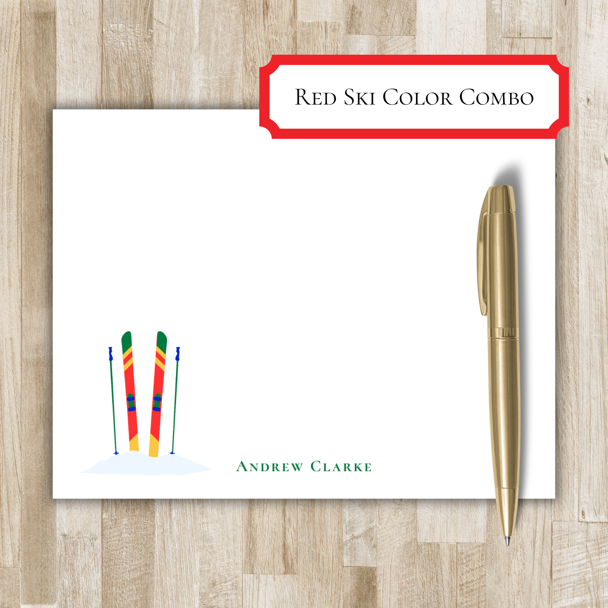 Personalized Skiing Stationery | Ski Flat Notecards | Skier Gift