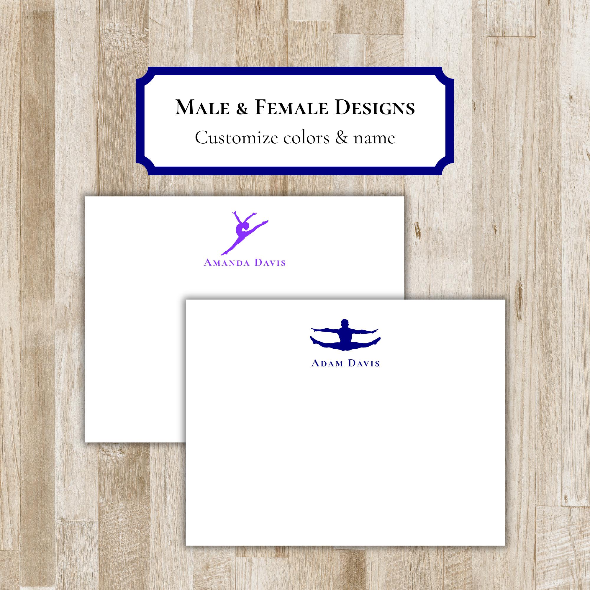 Male & Female Gymnastics Stationery Set - Flat Notecards