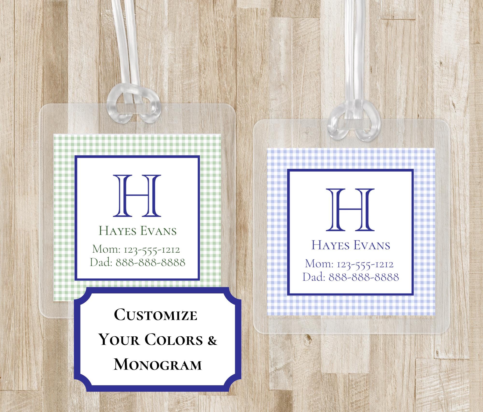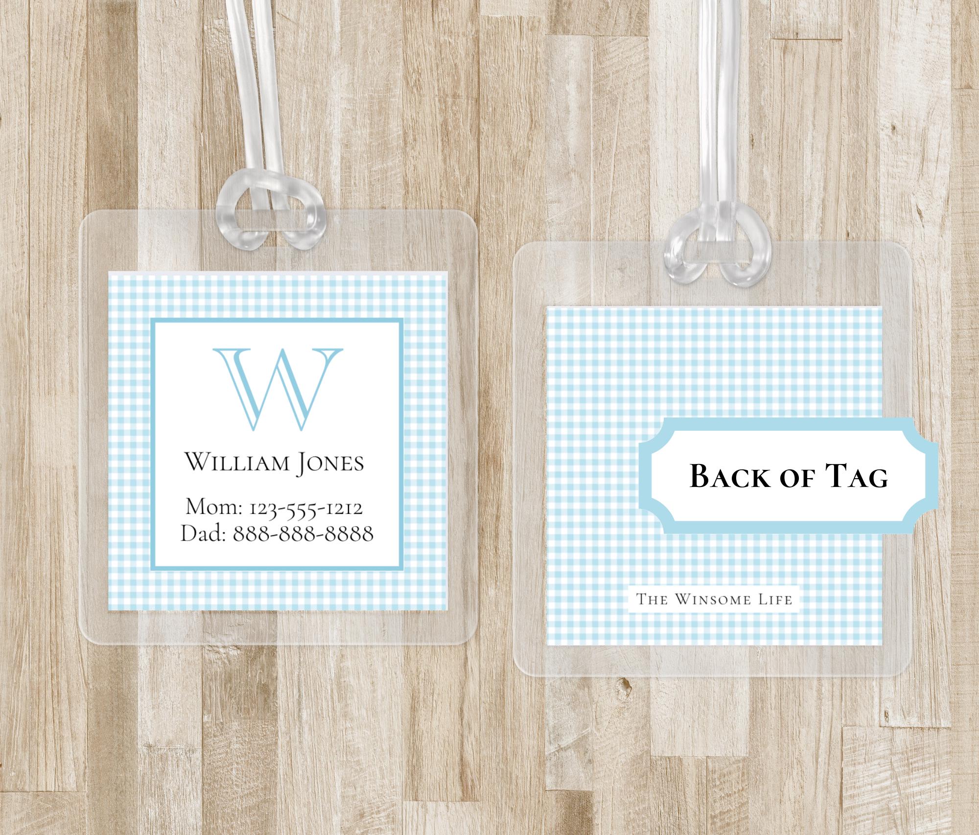 Monogram Gingham Bag Tag for Kids | Kids Backpack Tag | Personalized Laminated Square Luggage Tag | Monogram Tag for Kids Lunch Boxes
