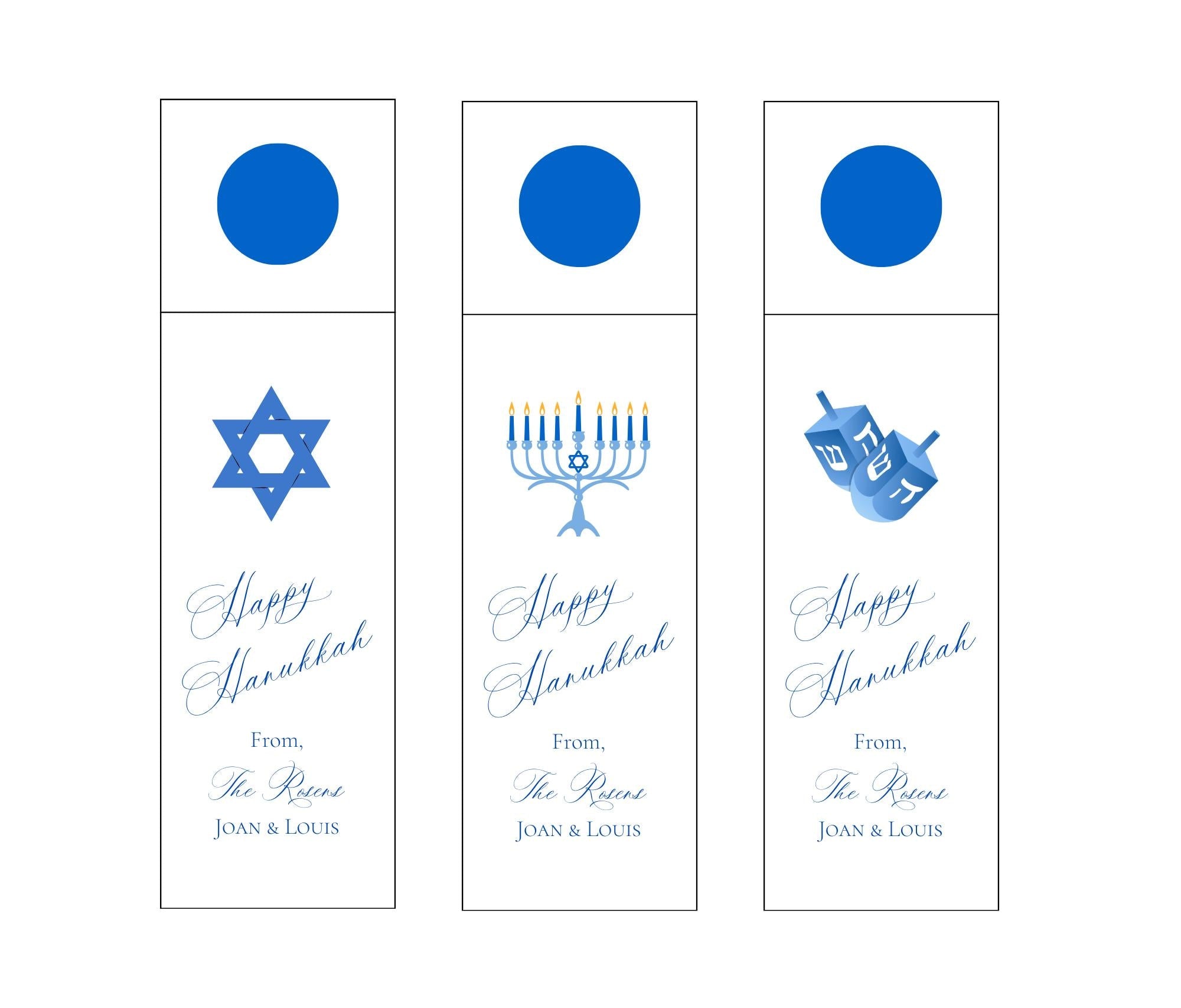 Personalized Hanukkah Wine Tags | Chanukah Mini Prosecco Tags | Choose your Icon and Personalize with Name