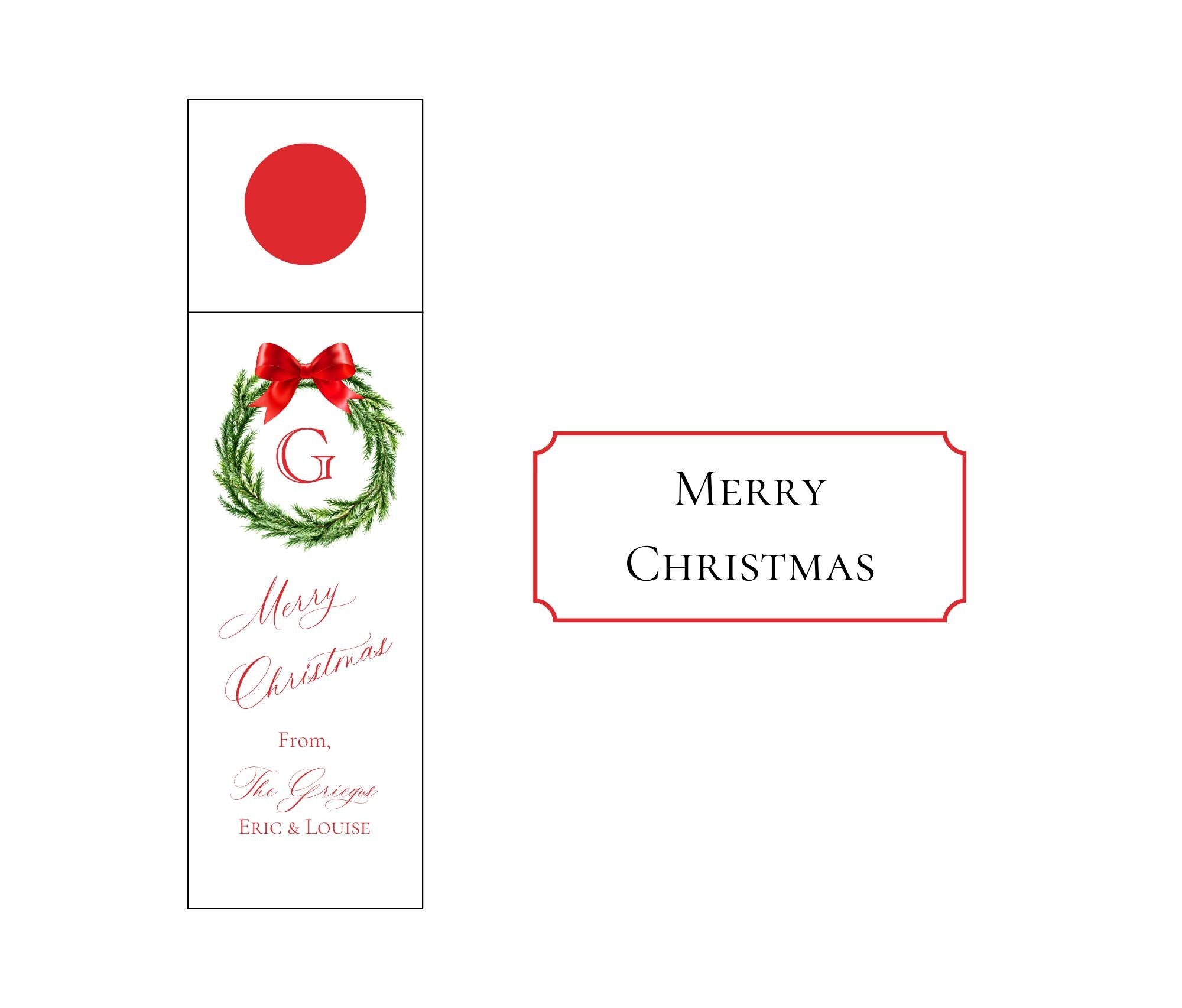 Christmas Wreath Personalized Gift Tags or Stickers | Monogram Holiday Gift Tags | Custom Christmas Gift Tags or Stickers | Preppy Xmas Tag