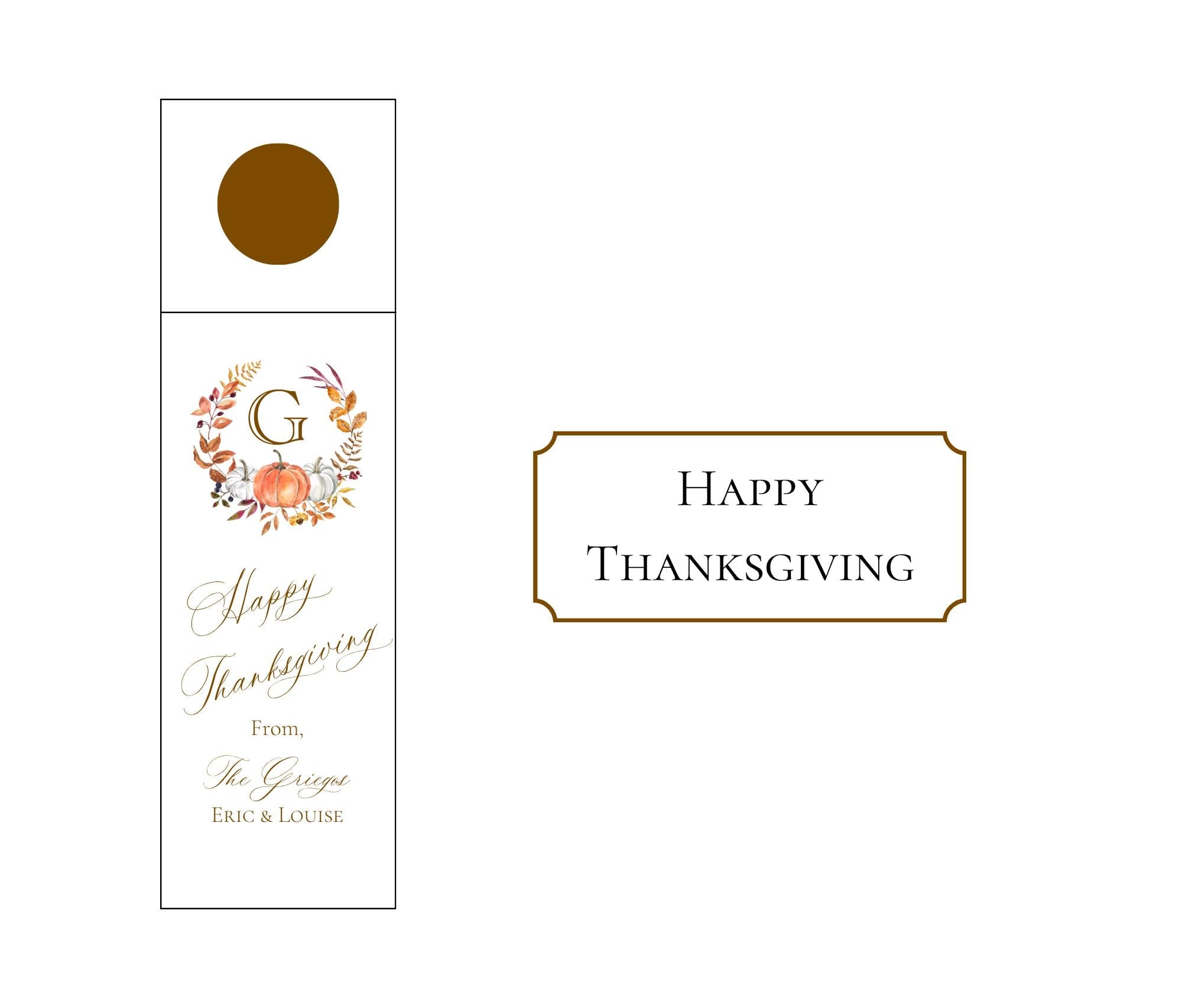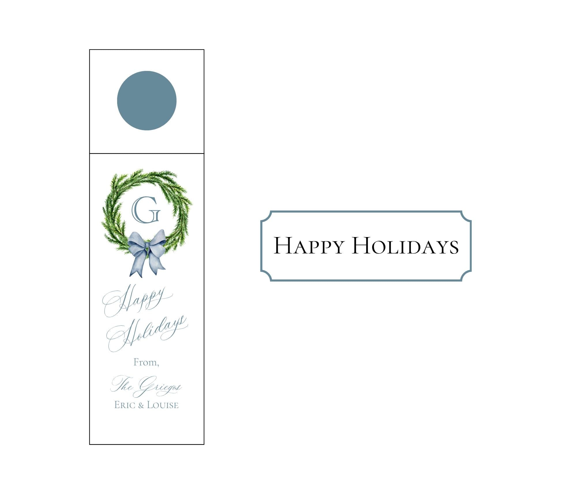 Personalized Holiday Wine Tags with Monogram - Thanksgiving, Christmas, Happy Holidays | Holiday Mini Prosecco Tags