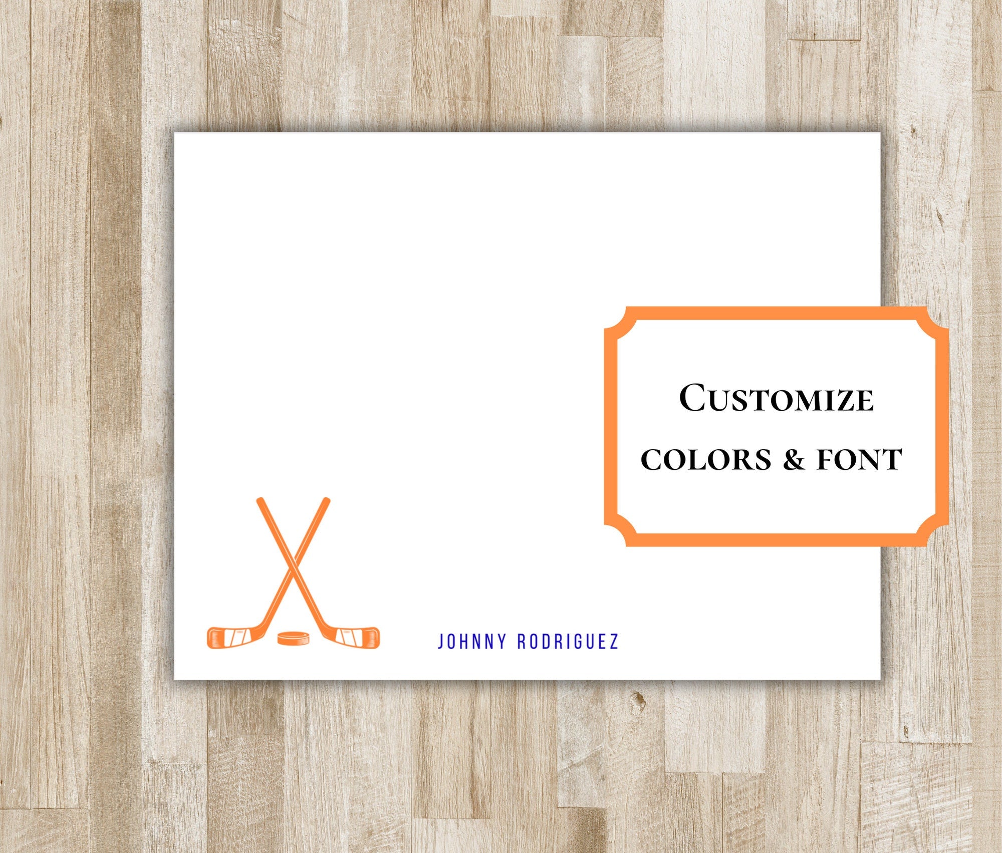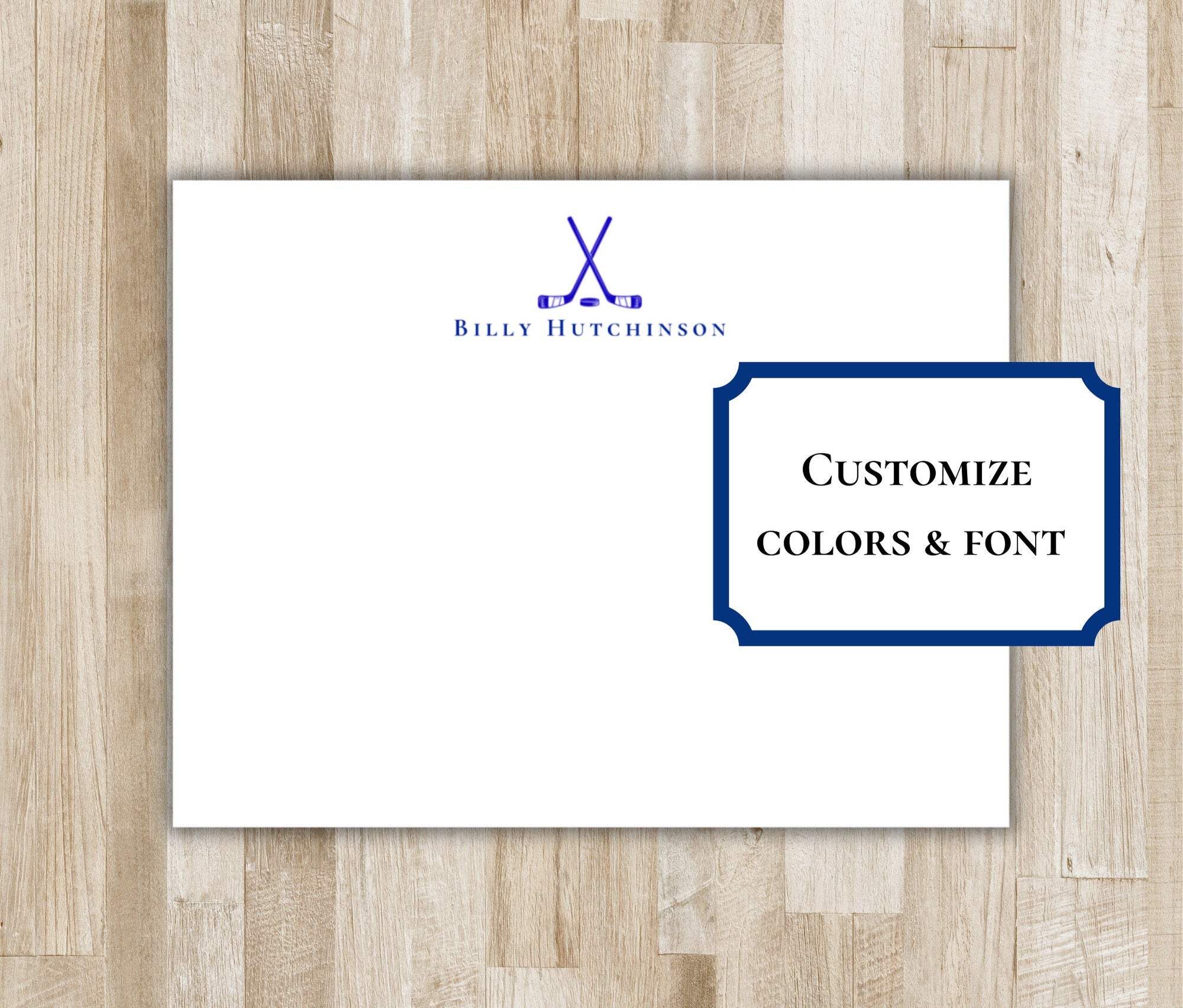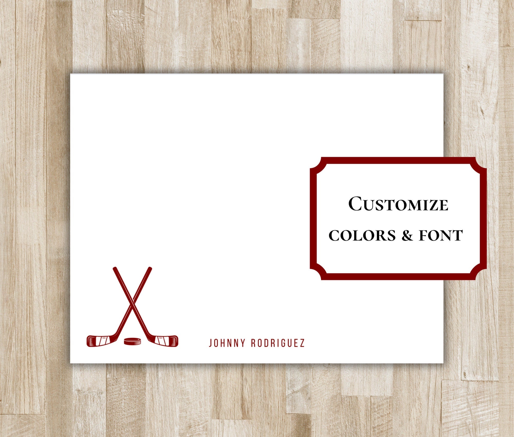 Personalized Ice Hockey Stationery Set / Stationary | Ice Hockey Sticks Notecards | Hockey Team Gift | Ice Hockey Gift