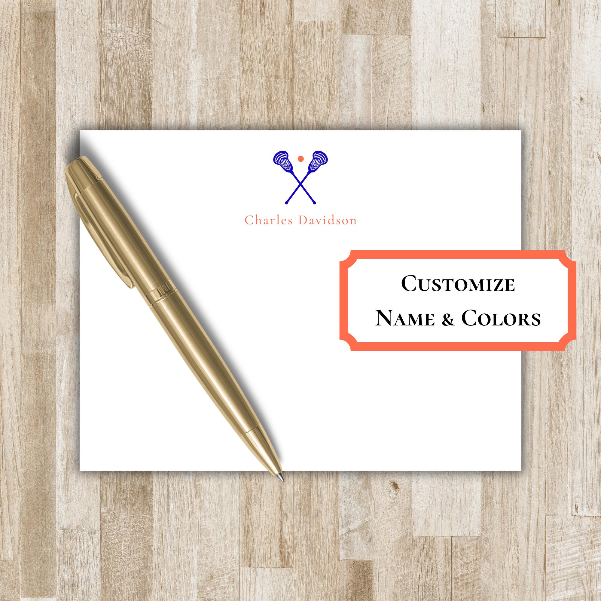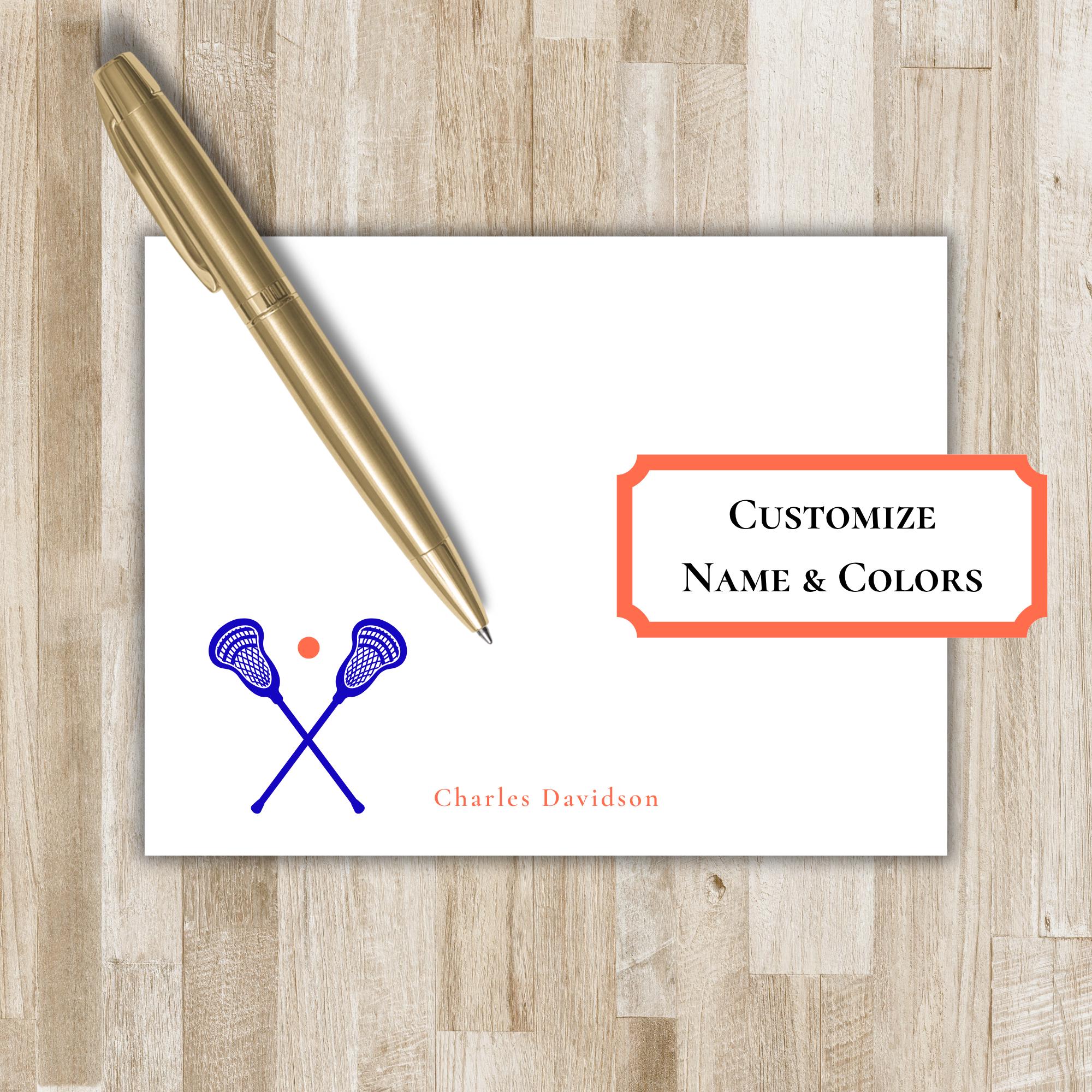 Personalized Lacrosse Stationery Set / Stationary | Lax Notecards | Lacrosse Sticks Notecards | Personalize with Team Colors | Team Gift