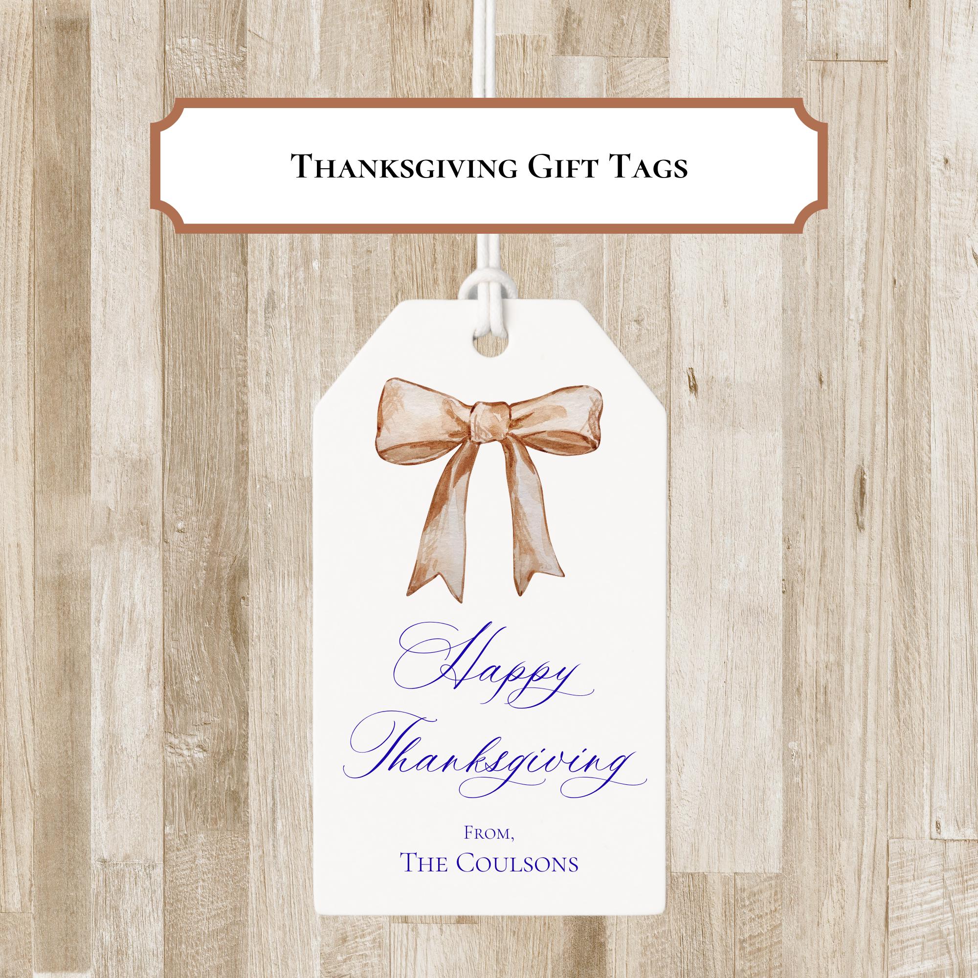 Personalized Thanksgiving Bow Gift Tags | Thanksgiving Bag Tags | Elegant Fall Enclosure Card / Tags